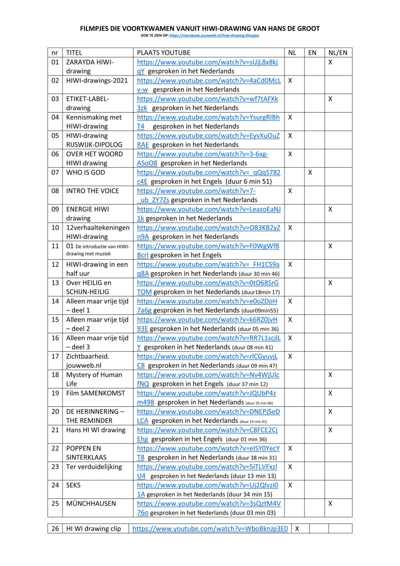 Under the schedule you can directly watch Zarayda's HIWI drawing video and for all the videos I see together you can go to: https://storybook.jouwweb.nl/hiwi-drawing-filmpjes
